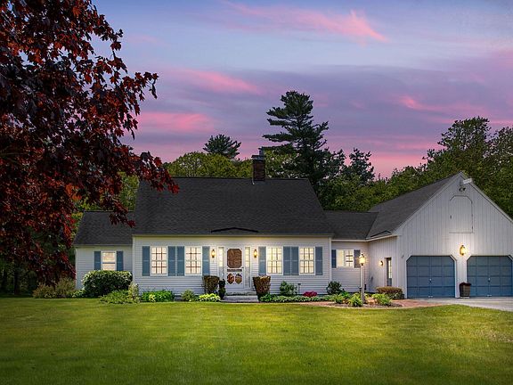 Spectacular, impeccably maintained one floor living in one of Topsham's most coveted neighborhoods. This 3BR/2BA dormer cape with an open plan kitchen/dining/ living room is not to be missed! Relax in the living room and enjoy the warm ambiance of a remote controlled Jøtul gas stove. First floor also includes an office, formal dining room and bright sun room/parlor. Attached two-car garage with direct entry to kitchen, pantry, primary suite on the main floor with cathedral ceilings and walk-in closet, custom tile shower and dual granite vanities. Open, bright updated eat in kitchen with triple doors that open to the back veranda. Hardwood floors throughout the main floor are in excellent condition with newer carpet in upstairs bedrooms, laundry on the first floor, cedar lined closet in guest room, full basement and recently updated upstairs bathroom with granite vanity. Exposed beams in the living room and beautiful custom woodwork throughout the first floor.