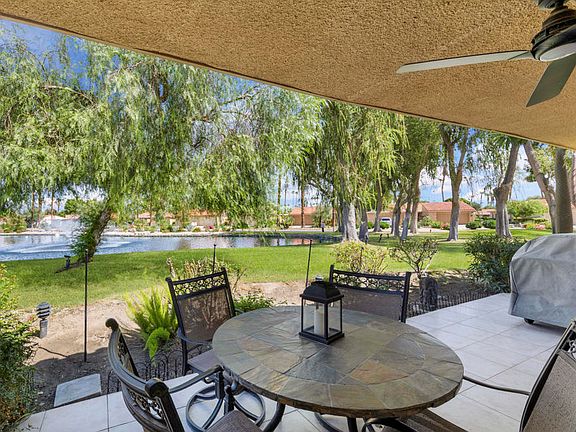 Turnkey Lakeside Condo at Sunrise CC!This 3 Bed, 2 Baths end unit, Barcelona Plan has panoramic views of the Lake.Resort Style Living awaits! This upgraded condo features Quartz Counter Tops, Custom Cabinets, Stainless Steel Appliances, Remodeled Baths, Tile Floors, Dual Pane Windows, Solar Panels, and a cozy Fireplace.Enjoy the private patio with sweeping Lake views, fountains, Swans and lush trees. Just steps from the Pool & Spa, Clubhouse. Sunrise CC offers and 18 Hole Golf Course, Tennis and Pickle Ball Courts.Also a Fitness Center, 21 Pools and Spas,Dining Room and Lounge. Close to the River Complex, Shops, Restaurants, Theaters. This Home is offered turnkey furnished, ready to move in and enjoy all that Sunrise CC has to offer.