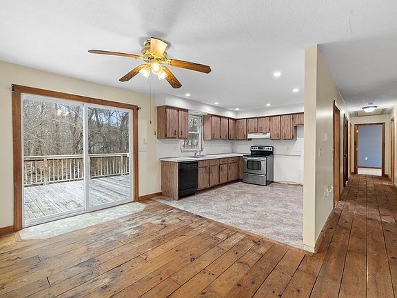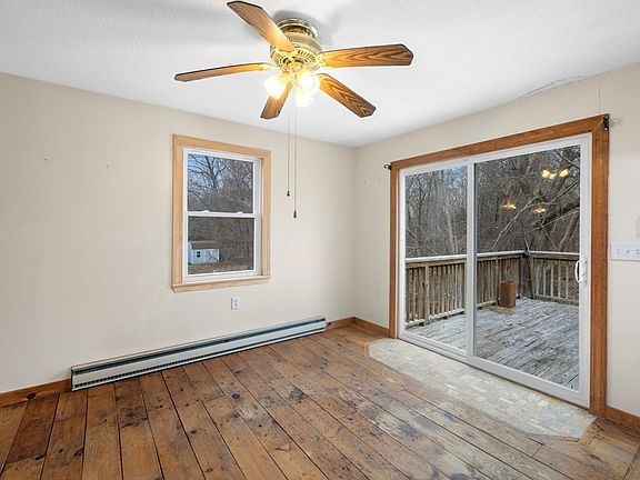 Don't miss your chance to own this gem at the end of a quiet street in a large neighborhood. This home is listed as a 3 bed in public record, but is currently being used as a 4 bed. Features include hardwood floors in the dining & living room, open floor plan on both floors, nice sized bedrooms, fireplace, woodstove & 1 car garage. 1.5 baths are in good condition & there is plenty of storage space. Slider opens to a private deck with a beautiful yard. A little polish is all it needs to make it shine!