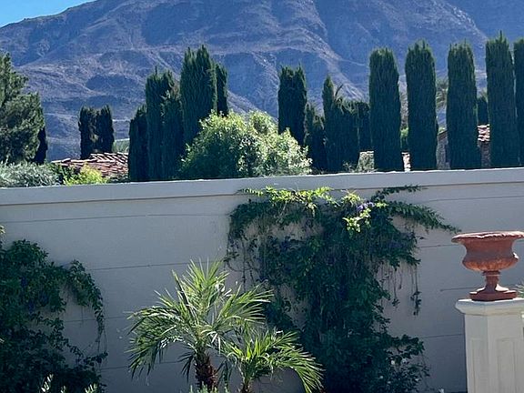 Only minutes away from El Paseo, The River and the new Disney Cotino development, hidden behind the gates of Bella Clancy this home is on a prime cul-de-sa lot with stunning views of the southern mountains, the Best in Bella Clancy. Old world charm of a Tuscan Villa! the owner spared no expense with the custom designer upgrades. From start to finish every detail of each room was being transformed into a visual delight, like a piece of art. This smart home intergrates the latest entertainment, security and convenience technologies. There are 5 bedrooms and 5.5 bathrooms. The primary suite is situated to allow privacy separated from the addional 4 ensuites. With 4,864 SF there is plenty of room for family and friends. The Great Room with a generous dining area allows for many gatherings small or large. The kitchen is a ''true'' chef's delight with upgraded appliances including a built-in wine refrigerator, quality cabinetry and gorgeous slab Quartzite countertops with sit-up island and a cozy breakfast area with built-ins that is adjacet to the backyard. The front gated courtyard entry prepares you for many delights of outdoor living. From the secluded sitting area with overhead trellis that is situated with easy access to the interior with large glass sliders. The backyard has lush landscaping that includes various citrus trees and an inviting custom pool with spa. And the View...Truly Spectacular morning or evening! The great room has tall soaring pocket sliders that allows the view to be seen from inside. There are custom balustrades that adds a coziness to the large covered patio that includes a visually inviting fireplace and convenient BBQ area.There are two separate 2/car garages. The owner has creatively used one garage as a family/friends/owner entertainment room with a mini-split air conditioner and walls of custom cabinetry. This can easily be converted back to garage usage. This property is truly a dream home with a great location. convenient to easy freeway access, hospitals and shopping centers close by.