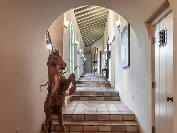 Centrally located in the heart of the Santa Lucia Preserve, this California Spanish Colonial style home embraces clean, contemporary lines with traditional elements like arched doorways and windows, exposed beams and trusses, period-inspired tilework, deep stucco walls and expansive indoor-outdoor living. The house unfolds in a tiered layout, and a grand gallery seamlessly connects the three ensuite bedrooms and library on the West end of the home to the great room and kitchen on the East end, designed to take advantage of the morning sun. A loft above the great room and an office tower are thoughtfully incorporated into the living spaces. A detached 500 sq. ft. workshop is an additional bonus space. Sited against a gently sloping hillside, the home harmonizes with the natural contours of the surrounding trees and landscape. Sweeping views expand beyond the Equestrian Center to the rolling hills of the Santa Lucia Preserve. Within walking distance is the Hacienda, the gym and pool facilities at The Ranch Club and the community hub, The Nest. This timeless residence reflects a thoughtful dialogue between architecture, light, and landscape.