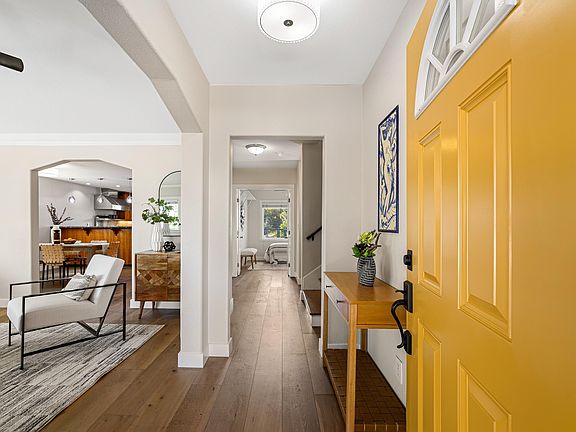 This stunning North Berkeley home was taken down to the studs, expanded, and fully remodeled in 2006, offering 2,498± sq ft of light-filled space with 4+ bedrooms and 3.5 bathrooms. Ideally located on a quiet cul-de-sac just blocks from North Berkeley BART, it sits near Crystal Red and Cedar Rose Parks, backs to the West St. Path and Ohlone Greenway, and is close to shops, restaurants, and transit. The main level features a formal entry, vaulted ceilings in the living room, a custom tile fireplace, and an expansive chef’s kitchen with a center island, second sink, 48” Viking range, commercial fridge, cherry cabinetry, granite counters, and stainless appliances, all opening to the dining area and a rear deck with spa. A bedroom, half bath, and handicap-accessible ramp complete this level. Upstairs includes two bedrooms and a remodeled bath, while the top floor hosts a private primary suite with dual closets, custom tile bath, and French doors to a lovely balcony. The lower level offers a plus room, large flex space, remodeled bath, laundry, and rear entry. Additional highlights include a detached office/studio with electricity, landscaped yard with lawn, dual-pane windows, wide plank wood floors, 2-car parking pad, and updated systems, drainage, and foundation.