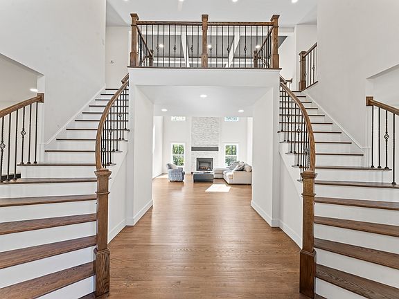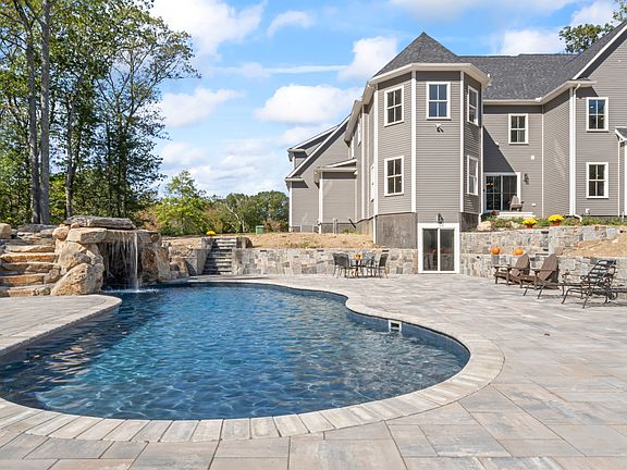 Welcome home to 5 Vona Way, where elegance meets comfort in this exceptional Colonial retreat. Step inside the grand entryway with double circular staircases opening to a breathtaking two-story great room, complete with a fireplace focal point and coffered ceilings. Spanning nearly 5,900 sq. ft. above grade plus just over 2,000 sq. ft. on the finished lower level, this 5-bedroom, 5.5-bath home is designed for both luxury and livability. At the heart of the home, the gourmet chef's kitchen boasts high-end appliances, dual dishwashers, twin beverage centers, a waterfall quartz island, and an oversized walk-in pantry. Hardwood floors and timeless architectural details flow throughout. The grand primary suite offers a private sitting room and dressing area, while upstairs also features an ensuite bedroom and two additional bedrooms with a Jack & Jill bath, all with walk-in closets. A convenient first-floor ensuite bedroom is perfect for guests or extended family. The walk-out lower level is a versatile space, ideal for a gym, wine cellar, home theater, or in-law suite with a full bath. A 5-car garage, including tandem bays, offers plenty of storage and flexibility. Outside, enjoy your own private resort with a heated saltwater pool and custom grotto, the ultimate setting for relaxation and entertaining. Nestled on a quiet cul-de-sac, this home truly has it all.