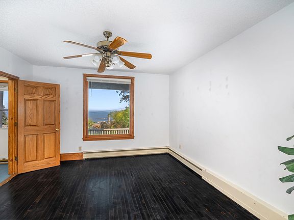 Panoramic Views of Lake Superior and a Convenient Location are yours in this well-cared-for and move-in-ready 3+ bedroom, 2-bath Traditional Home! Main floor conveniences include the kitchen, living room, dining room, and a "flex" room complete with laundry and an updated bath (soaking tub included)! Upstairs, you'll find spacious bedrooms that offer expansive views for weather watching, sunrise viewing, and shipping traffic—providing a "tree house perch" over all Duluth has to offer. You’ll also discover an extra space perfect for a TV room or office, adding to the versatility of the home.Recent updates include city-installed water lines (lead pipes replaced) and durable metal siding for low-maintenance living. The fenced lot is surrounded by privacy bushes, offering a peaceful setting and room for outdoor fun. The 2-car garage in the rear includes a workbench for DIY projects, and extra off-street parking adds convenience. Not only are the views phenomenal, but the access to all areas is a stone's throw away—biking to the Canal or Downtown is a breeze! For a perfect end to your day, sit on the front porch and enjoy the city lights at night. This is an opportunity to be centrally located in a move-in-ready home on a lovely lot with everything you need!