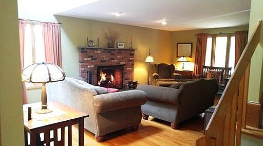 MOTIVATED SELLERS READY FOR QUICK CLOSING. This custom home has a warm, relaxed feel and huge yard. Living rm with brick fireplace and hardwood floors. Vaulted ceilings, skylights and quality trim work. Dining rm with bow window and hardwood floors flows into kitchen where a massive designer island plays center stage in this tastefully updated space offering quartz counters, stainless steel appliances, a micro/convection oven and tile floor. Upstairs has 3 nice size bedrooms and a full bath. 2nd full bath on first floor. The lower level family rm with walk out slider and wood stove. Separate laundry & storage rooms. 2 car garage. Backyard patio overlooks the yard. The grounds are beautifully landscaped with perennials, flowering trees and stone walls. Many updates new Buderus boiler, septic, siding & windows Title V in hand. Good location. Comet beach & boat ramp around the corner for more outdoor fun.