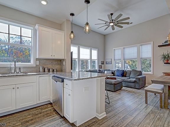 Experience penthouse-style luxury living at Brookland at Lakepointe. This private top-floor, corner condominium offers an open-concept layout with vaulted 12-foot ceilings and expansive windows that fill the home with natural light. Featuring two spacious bedrooms and two full bathrooms, the residence includes a primary suite with a walk-in closet and private bath. The modern kitchen is appointed with granite countertops, stainless steel appliances, and a reverse osmosis water filtration system. Located just steps from Lake Hopatcong, enjoy direct access to boating, dining, and recreation, along with optional membership at The Beach at Crescent Cove. Enjoy year-round comfort with in-suite laundry, a water softener, and a high-efficiency HVAC system. An oversized single-car garage provides ample space for parking and storage, with an additional private outdoor space reserved for owners. With low HOA fees, strong rental demand, and convenient access to Manhattan via nearby train and bus stations, this property offers an exceptional blend of leisure and value. Perfect for full-time residence or a weekend retreat, this home combines relaxed lakeside living with unmatched accessibility. The area is also served by excellent schools, including Elite Prep Academy, ranked #3 among private high schools in New Jersey.