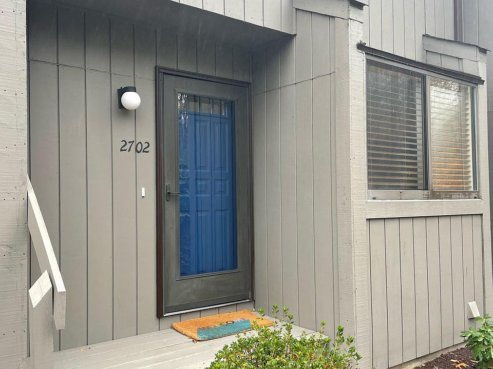 Townhouse is located at the very end of the road for privacy. The entire interior has been recently painted. 1st level offers an open floor plan with brand new granite kitchen counters, new tiled back splash, new stove, new faucets. Eat-in kitchen plus a formal dining area. Hardwood flooring in the dining & living room. A large sliding door with screen that leads to the private deck overlooking the lush trees and preserve. 2nd level stairs and the two very large bedrooms with spacious closets both have brand new modern wall-to-wall carpeting with a thick pad for comfort. Full bathroom offers brand new Quartz vanity counter, new faucets, new tiled backsplash at vanity area and shower. Large bedroom windows, plus the skylights in the condo allow the natural sunlight to shine in. Forced hot air heat with central ac. All major appliances, including washer & dryer. One car garage plus one parking spot next to unit. Owner pays for water. Renter is responsible for electrical and gas. No indoor smoking. There is a $25 monthly fee per pet. 1-year minimum lease duration.