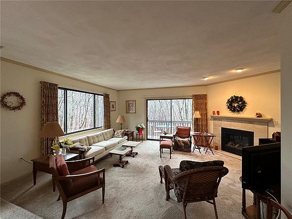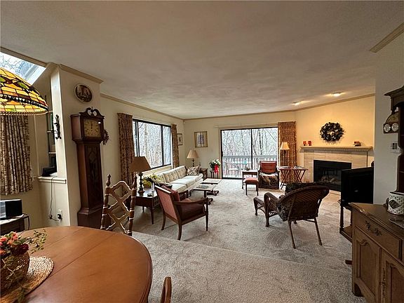 Wonderful Townhouse in prime location. End unit which features view of Manton Pond & private wooded setting. Property abuts nature preserve. Hardwoods throughout, along with new carpet in living room/great room. Updated gas fireplace, large eat in kitchen with open floor leading to dining area , livingroom and sliders to private deck. Home features vaulted ceilings with skylights. Green house window ...large master bedroom with large windows that enhance the amazing back yard view and plenty of closets. Half bath located on first floor. Laundry in basement with storage. 1 Car garage , 1 assigned space and plenty of other parking throughout the complex.