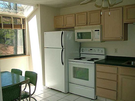 This condo offers the BEST price in the complex! Spacious & bright! F/p'd sunken LR w/ slider to large back deck. All appliances to stay in kitchen! 2 large bedrooms with plenty of closet space! 1/5 baths, 1 car garage, C/A & so much more!