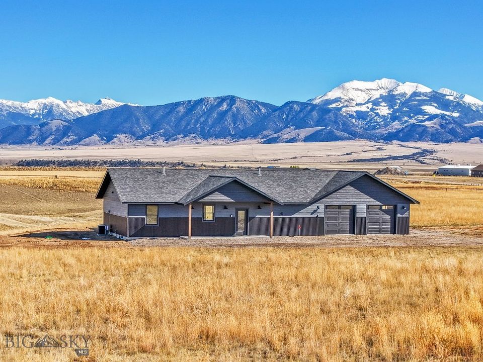 Beautiful new construction in Shadow Ridge Subdivision! This 3 bedroom, 2 bathroom home offers approximately 1,465 square feet of comfortable, well-designed living space on 1.23± acres. The open floor plan is filled with natural light and takes in panoramic views of the Madison Range. Enjoy low-maintenance siding, a 308± square foot covered patio for outdoor living, and a 2-car garage for convenience and storage. Built with modern efficiency in mind, this home features forced air heat and central A/C, supported by a 1,000-gallon owned and buried propane tank. The 258-foot well produces an impressive 55 GPM. Shadow Ridge is one of Ennis’ newest subdivisions, located just 3 miles from town with paved roads, mailboxes, and a 30,000-gallon community fire suppression tank. Landscaping will be completed in the spring, so you can move right in and enjoy your new home with nothing left to do but relax and take in the views. Licensed MT listing agent has an ownership interest in the property & can only represent the Seller.