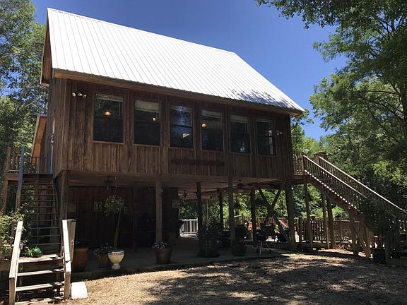 Your very own weekend retreat or a great place to call home, just minutes from Hattiesburg and Purvis. Take advantage of this private Black Creek camp with tons of creek frontage, 4 acres of land and gated entrance. Sprawling decks highlight the wooded and water views. Inside, warm wood paneled walls set the scene for the perfect retreat. Features include a two-story living room, open kitchen boasting gas cooking and incredible views, and upstairs guest bedrooms and bathroom. Fabulous master suite with double sinks and a claw foot tub. The lower level provides unique features such as an electronic grocery elevator, full bathroom, outdoor kitchen with sink and built-in bar seating and convenient storage area. Start enjoying outdoor activities with this spectacular getaway.