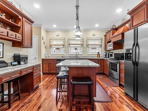 - Features: Fireplace, Ceiling Fan(s), Wood Floor, Window Treatment, Dining Area, Built-in Features, Balcony/Deck