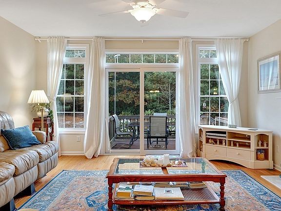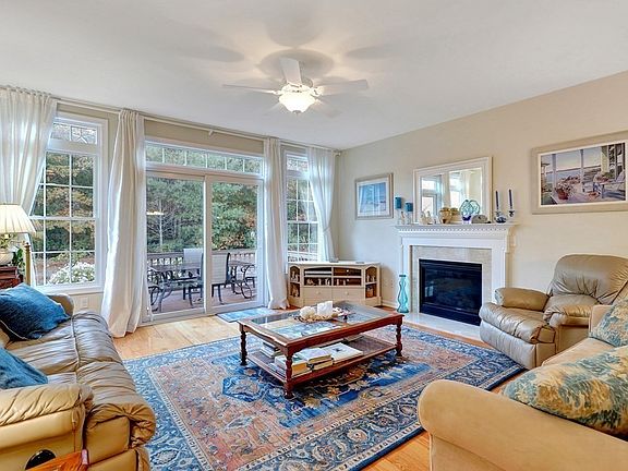 Lovely Milton style home on one of the newer streets in Great Island at The Pinehills. Fully landscaped yard with deck off the back overlooking private wooded views. Kitchen has pantry closet, granite counter tops, 42" cabinets, stainless steel appliances. Formal Dining Room with crown molding, wainscoting & bump out bay window. Living room with gas fireplace, vaulted ceiling & sliders to deck. Master bedroom with tray ceiling and hardwood flooring. Oak tread stairway to 2nd floor loft sitting room with guest bedroom & full bath. Other features include ceiling fans throughout, tankless hot water. All the amenities Great Island has to offer; walking distance to pond access & the clubhouse with its amenities, indoor pool, fitness room, tennis, bocce and tons of clubs, activities, and day trips. Come enjoy the Great Island lifestyle!!