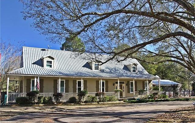 Gorgeous 5 acre retreat with live oaks all around!! Beautiful 2-story acadian features gourmet eat in kitchen, cozy living area with country hearth fireplace and brick bar, great for entertaining! Master Suite has beautifully designed heart of pine floors. Large upstairs bedrooms, each have their own bath. Beautiful wrap-around porch, guest house built into barn after Katrina. Fencing all around for horses!Hurry, this beauty won't last long.