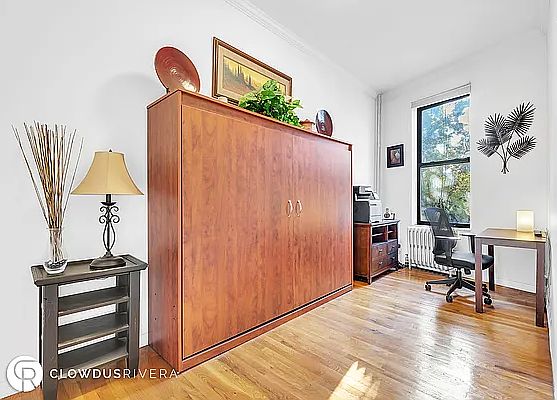 Ideal for investment, pied-à-terre, or primary residence use, this charming West Village one bedroom home is a rare find. Ascend one flight of stairs to savor the village life in this character-filled residence with its pleasant tree-lined, western exposures. Upon entering, you'll be met by a well-equipped kitchen, full bathroom, and bedroom (currently outfitted with murphy bed / home office setup) with walk-in closet. The spacious living room sports a cute decorative fireplace, hardwood floors, and impressively high ceilings that allow for useful overhead storage. Low monthlies make this a sweet deal: live here full time, part time, or use as an investment property with the potential for impressive return - the choice is yours!