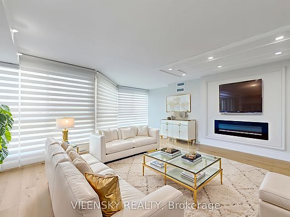 Luxury Living In The Heart Of Richmond Hill! N-E-W-L-Y--R-E-N-O-V-A-T-E-D! Beautiful Sunfilled 1450 Sqft Unit! Upgraded 2 +1 Bedrooms & 2 Bathrooms With Stunning Floor To Ceiling Windows. Ideal Layout Includes Open Concept Living Room With Fireplace, Spacious Dining/Family Room, Stunning New Chef's Kitchen, Breakfast Bar, Quartz Countertops, Brand New-Never Used Stainless Steel Appliances. Luxury Upgrades Include Coffered Ceilings, Beautifully Detailed Wainscotting, Pot lights Throughout, Ensuite Laundry Room, Custom Blinds/Curtains, And Premium Flooring. Bright & Spacious Primary Bedroom Fully Upgraded 4-Piece Ensuite Primary Bathroom & His/Hers Closets. Additional Bedroom With Double Closet + 3Pc Additional Bathroom. Ensuite Laundry With Spacious Linen Closet & Additional 2 Coat Closets In Foyer. Extra Spacious Unit With Modern Finishes! Luxury At Its Best! One Underground Parking Spot + One Locker Included.Brand New Never Used Appliances: Stainless Steel Fridge, Stove, Dishwasher, Microwave Hood, Washer & Dryer. All Utilities Are Included In Maintenance Fees Except Taxes.