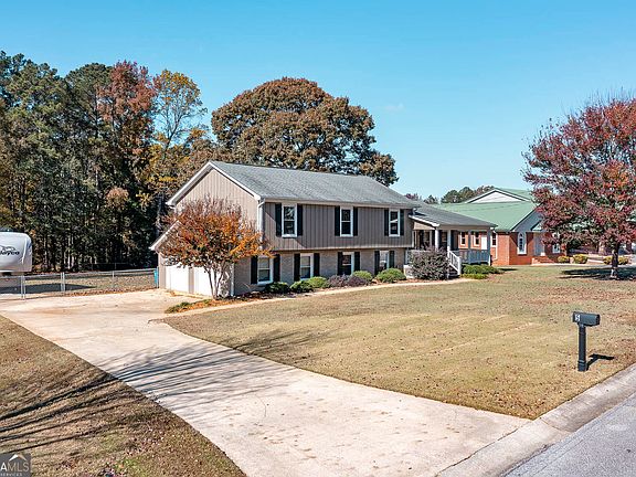 NEW LISTING!! Just in time to move in before the Holidays! NO HOA!! This spacious 4 bedroom, 2 full bath split level floor plan features a rocking chair front porch situated on a level lot that's conveniently located close to shopping, restaurants, doctors offices, schools and easy access to I-75 where you're less than 30 miles to the Atlanta Airport. Upgrades include NEW WINDOWS throughout, neutral paint color, hardwood floors, and updated light fixtures including adding extra recessed lighting. The large kitchen is amazing! It includes beautiful quartz countertops, tile backsplash, stainless steel appliances with a high end gas range & vent hood, a ton of oak cabinets and a prep cabinet with a separate built in sink. The oversized primary bedroom will accommodate a king size bedroom suite, the ENORMOUS closet is literally large enough to set up a small office, or it would be perfect for a nursery. The primary bath has tile floors, a large separate tiled shower, double vanities with granite counters, and updated lighting. The lower level has a SECOND family room with a cozy wood burning stove, knotty pine tongue and groove ceilings, a large laundry room plus a bonus room that could be another office or work out space. The huge back deck overlooks a private fenced in back yard with an outbuilding that's perfect space for storing your outdoor tools. This community has friendly neighbors, it's quiet and has NO HOA! Note, the square footage is quoted from tax records and must be confirmed through an appraisal process.