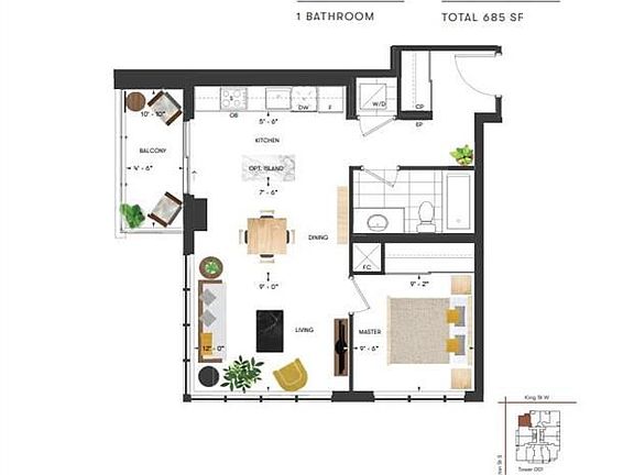 - Total interior livable area: 625 sqft