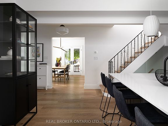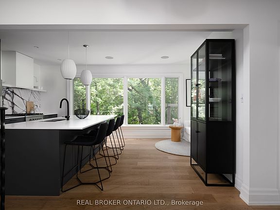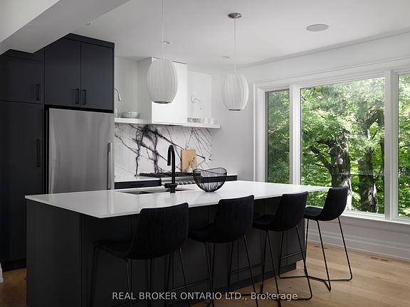This exceptional detached home, set on a wide ravine lot, has been completely re-imagined and meticulously renovated from top to bottom. Interior design assisted by Sarah Birnie, named one of Canada's top 100 designers, this home is a beautiful blend of modern and warmth. Brimming with curb appeal, it welcomes you with a mature maple tree and the tranquillity of a quiet ravine street. Inside, a spacious foyer with a large front hall closet and rare main floor powder room sets the tone for the thoughtful design throughout. The kitchen is a chefs dream, showcasing Fisher & Paykel stainless steel appliances, custom cabinetry, an oversized island, and breathtaking ravine views. The open-concept dining and living area is anchored by a wood-burning fireplace and features large French doors that extend seamlessly onto a private veranda, perfect for morning coffee or evening cocktails.Upstairs, discover three generous bedrooms with treetop views and ample closet space. The serene primary suite, with west-facing windows, offers a peaceful retreat complete with extensive custom closets. The lower level boasts a versatile recreation room ideal as a playroom, cozy TV lounge, or home office along with an oversized pantry and abundant storage to suit family living. A direct walkout leads to a custom-designed ravine deck with spectacular views of Williamson Park Ravine, creating a backyard escape unlike any other.Perfectly situated just steps from parks, green spaces, schools, the farmers market, shops on Gerrard and transit, this home is a rare blend of modern luxury and natural beauty offering the best of both worlds.