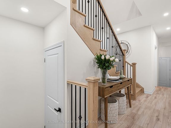Welcome to 5 Wesmina Avenue - a stunning, newly built home completed in December 2023, with over $100,000 in premium finishes. Designed with both elegance and everyday comfort in mind, this 4-bedroom, 3-bath beauty features smooth ceilings throughout, 9-foot main-floor ceilings, and a 10-foot ceiling in the primary suite. The home showcases durable, upgraded flooring with no carpet, a modern staircase with sleek railings, and pot lights with designer fixtures throughout. The chef's kitchen blends style and function, with quartz countertops, modern cabinetry, chimney-style hood fan, counter-depth stainless-steel fridge with cabinetry above, and undermount sinks. The bathrooms feature upgraded ceramics, frameless glass showers, and contemporary vanities. The primary suite offers a custom walk-in closet and motorized zebra blinds, while all bedrooms include blackout blinds for comfort and privacy. Additional upgrades include an 8-foot front entry door, double-height extended garage with opener, water softener and filtration system, and a basement rough-in for a future bathroom-making this home as practical as it is beautiful. Perfectly located in Stouffville's most desirable community, you're minutes from parks, trails, Main Street shops, top-rated schools, the GO Train, and easy highway access to Hwy 404/407. A true turnkey home blending thoughtful design, high-end upgrades, and timeless appeal-ready for you to move in and enjoy.