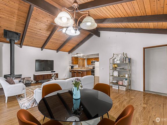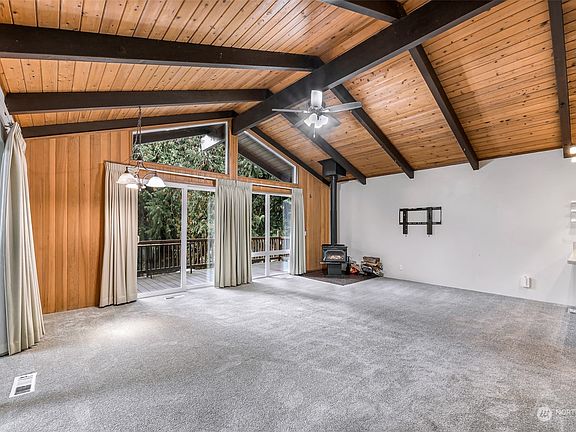 Welcome to your delightful cabin/chalet style home located close to the entry at gate 9 in Sudden Valley. Soaring, vaulted tongue & groove wood ceilings, large windows highlight the spacious living/dining area & 2 bedrooms upstairs. Enjoy a soak in the hot tub or your morning coffee or evening beverage from the private, oversized deck off the living area. Spacious bonus rm w/ 2 bedrooms in the finished lower level. New roof 5 yrs ago, using insulation between sheeting & roofing to maintain the upstairs wood ceiling. The wood stove will keep you cozy in the winter & the air conditioning will keep you cool in the summer! Other features incl new furnace w/ a/c, new drainage and patio & deck rails 4 yrs ago, & hot tub installed 2 yrs ago.