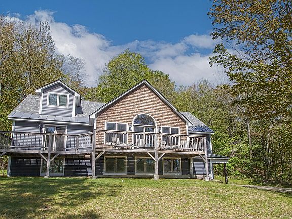 This home checks so many boxes for a Vermont mountain getaway. Large open living room, kitchen and dining with a wall of windows and stone fireplace are just a few of those desired features that everyone wants in a Vermont home. Nestled on a corner lot with mature trees providing natural shade but still allowing the warm sun into the great room. Enter either through the two car garage or directly into the mudroom for easy organization of winter or summer gear. The lower level offers a play room with TV area, ping pong, bedroom and full bath. A great space for all ages. Primary bedroom suite is located just off the living room and has it's own access to the front deck. Two additional bedrooms and baths are on the third level. Extend the summer fun out onto the back deck and up to the built in stone fire pit. Just a short drive to Mount Snow Ski Resort or The Hermitage Club and Lake Whitingham.