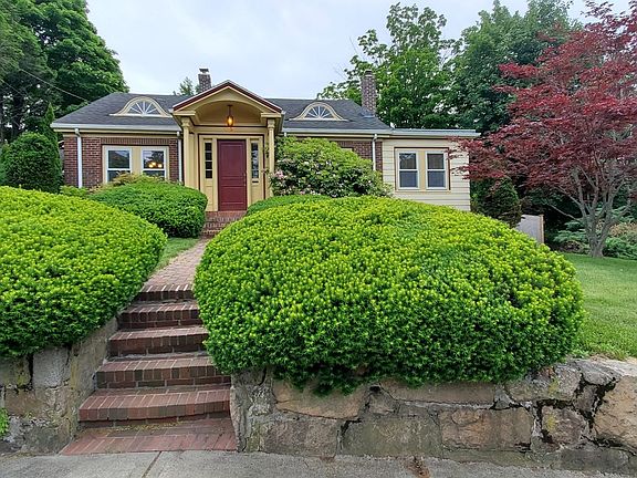 Classic Craftsman bungalow in Dedham's sought-after Endicott neighborhood close to EVERYTHING...schools, park, village center, MBTA commuter rail station. The home's many Craftsman-style features include stunning twin "eyebrow" windows, original moldings, hardwood floors, tin ceiling, coffered ceiling, crystal doorknobs built-ins and more. Mature landscaping wrapped in a handsome stone wall heightens the charm of this prominent corner lot and a fenced area to the rear provides privacy for outdoor entertaining or just relaxing. The driveway has been freshly paved, house's trim newly painted, chimney newly repointed and capped. Updates on the interior include fresh paint, new Buderus boiler, water heater and service pipes, maintained and functioning living room fireplace, newly refinished hardwood floors and new laminate kitchen flooring.