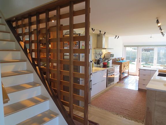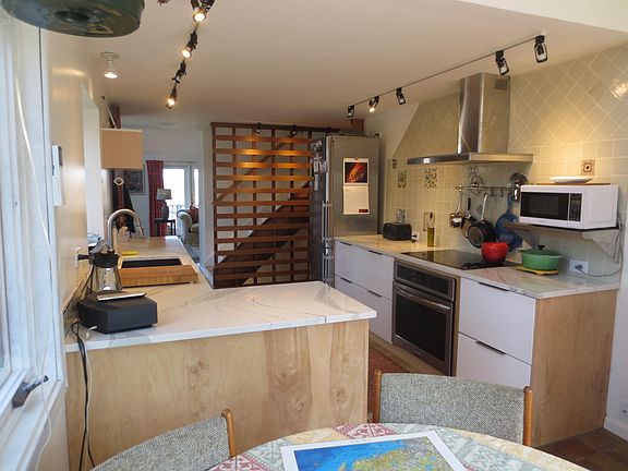 Outstanding Beacon Heights location for contemporary three bedroom home. Master bedroom on first level with large updated bath, and sliders to a very private brick patio. Cathedral ceilings in living room/dining room areas with sliding doors to a 200 sq ft deck overlooking an expansive landscaped yard with mature plantings. Office and two bedrooms on second level, and a laundry and extra bedroom on ground level. Upper and lower driveways, and an attached pet enclosure with pet door. House is perched high providing sweeping views. lease length is negotiable after three month commitment.