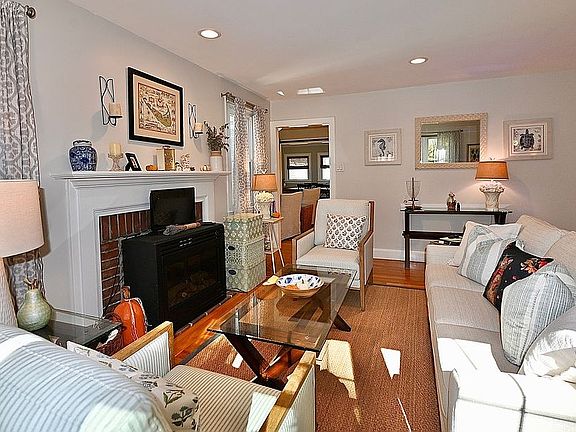 The updated kitchen offers Cambria countertops, hand crafted tiling and stainless steel appliances. A washer dryer is conveniently tucked away in a kitchen closet.