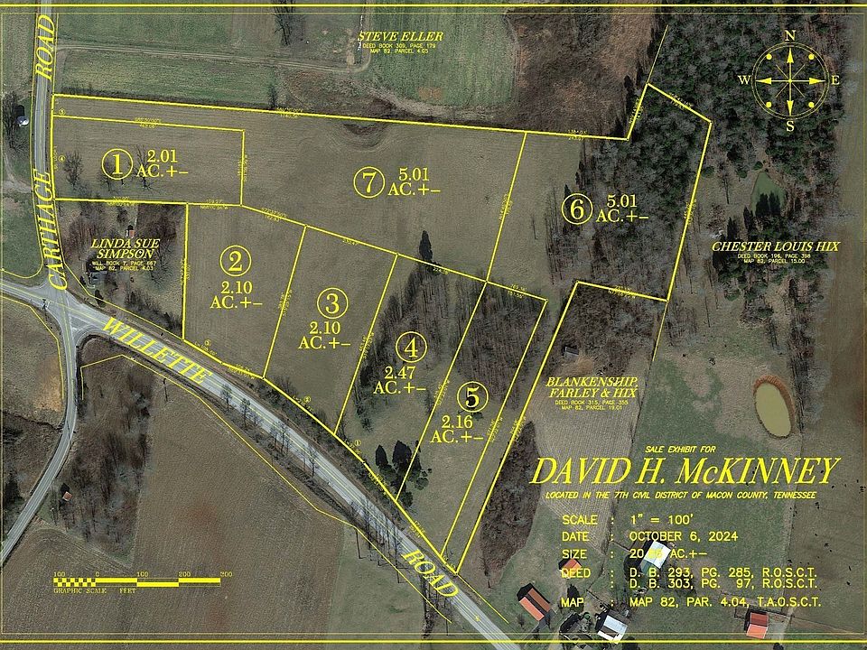 At Absolute Auction! Saturday, December 7th at 10:00 A.M.! Real Estate consists of an outstanding 20.86 acres that has been surveyed, platted and staked to be sold in 7 beautiful tracts! Tracts range in size from 2.01 acres to 5.01 acres with 2 tracts fronting on Carthage Rd. and 5 tracts fronting on Willette Rd. Tracts lay level to very gently rolling and are mostly open in good pasture with some wooded areas. All tracts have city water and high speed internet available and have all been soils tested and approved for septic systems! Excellent building sites! If you are looking for a smaller residential tract or some acreage to start your own little mini farm, you must check these tracts out! Convenient Location! This property is convenient to Red Boiling Springs, Lafayette, Carthage and approx. 30 minutes to I-40 in Gordonsville and less than 1-hour to Cookeville! Property is lightly restricted and will allow for site built or manufactured homes no older than 5-years old! Come! Look!! Buy!!!