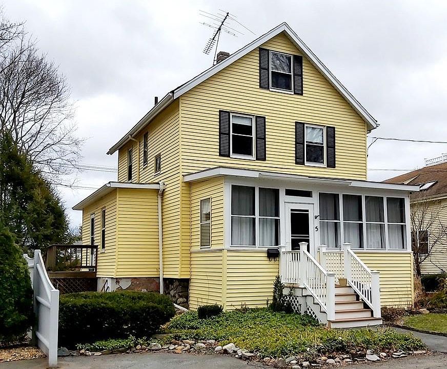 Well loved, unique colonial home on small dead end street in a quiet, convenient spot a short distance to schools, downtown & commuter routes. Eat in kitchen w/pantry closet & access to flat, usable back yard perfect for gardening & fire pit. Enclosed front porch adds extra space for relaxing with coffee & a book, or use as a mudroom. Open concept living/dining room or large family room. 1st floor master suite 5 years old, boasts a large walk-in tiled shower. Upstairs find a full bath with tub, second big bedroom w/walk-in closet and large sitting room or office that can be converted back to a bedroom by putting a wall back up. Walk-up attic w/finished space (no heat) & storage. The basement can be accessed from inside & from the yard. Replacement windows, some updated electrical, young water heater. This home has been in the same family since 1961 & while it needs updating it offers a wonderful chance to re-imagine, renovate & customize as your forever home in a sought after town.