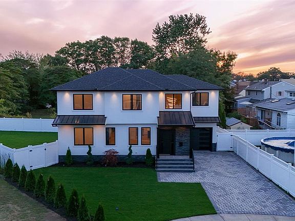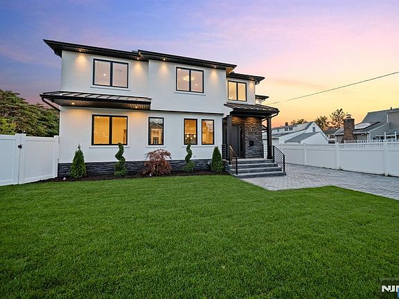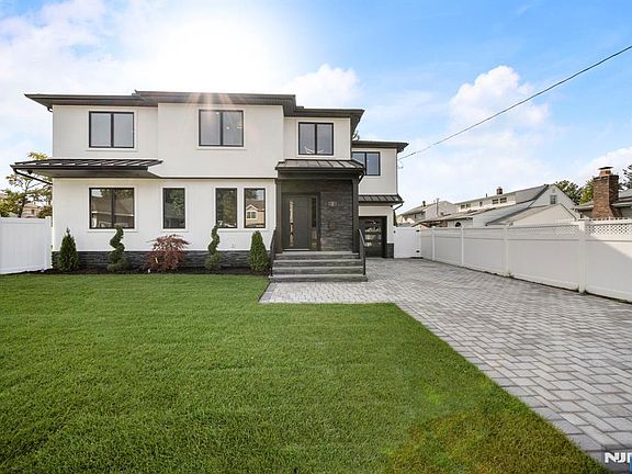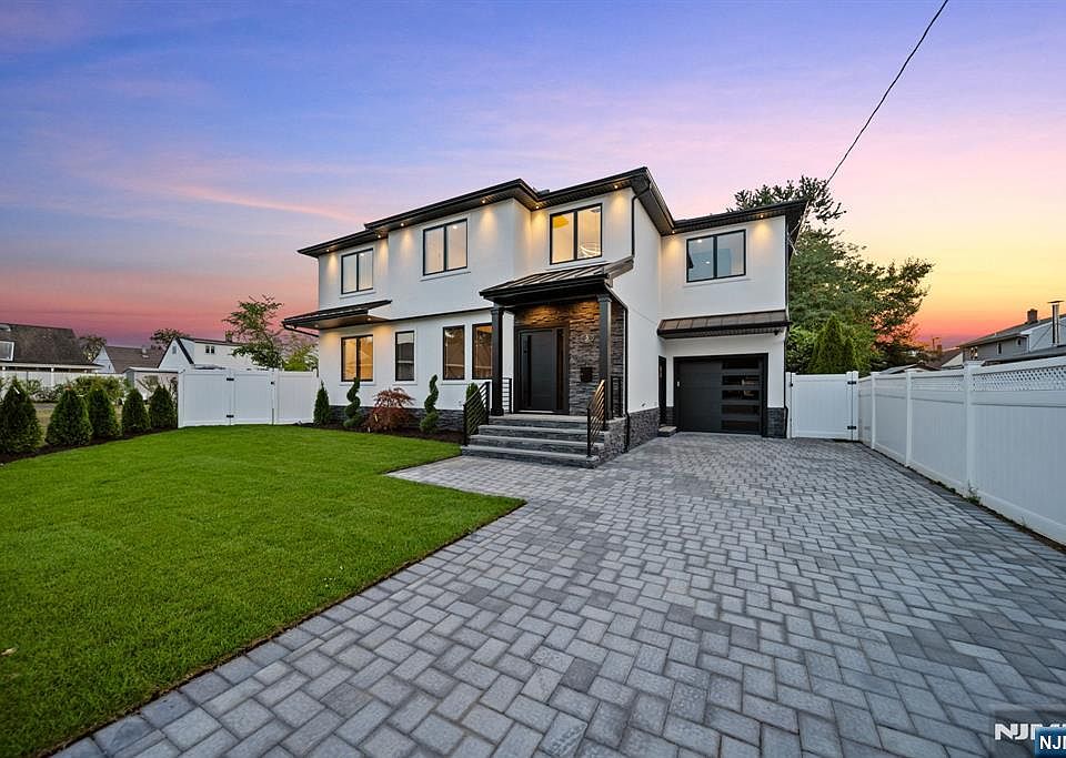 Experience refined living in this stunning new-construction 5-bedroom, 3-bath home, located on a cul-de-sac and thoughtfully crafted on an existing foundation with today's modern lifestyle in mind. A paver driveway, and professional landscaping with fresh sod create exceptional curb appeal. The fenced backyard with 6' vinyl fencing and multi-zone sprinkler system ensures both privacy and convenience. Step into a dramatic 2-story foyer leading to wide-plank white oak floors, modern staircase with rod iron balusters, bold accent wall, ceiling and mudroom leading to attached garage access. The inviting living room features a wood-burning fireplace framed by decorative exposed beams, while the chef's kitchen impresses with quartz counters and backsplash, an oversized island, and premium Samsung & Sharp appliances. The first floor offers a versatile bedroom, full bath, and open-concept flow designed for entertaining. Upstairs, find four spacious bedrooms and two baths, including a luxurious primary suite with a custom walk-in closet and spa-like bathroom with a custom double vanity. A second-floor laundry with washer/dryer hookups adds ease. The finished basement offers a large family room with tiled floors, a wine bar with sink, and plenty of space for gatherings. Additional comforts include 2-zone heating/cooling and central vacuum. Conveniently located and close to NYC transportation, this home blends elegance, comfort, and function in every detail, truly a must-see.