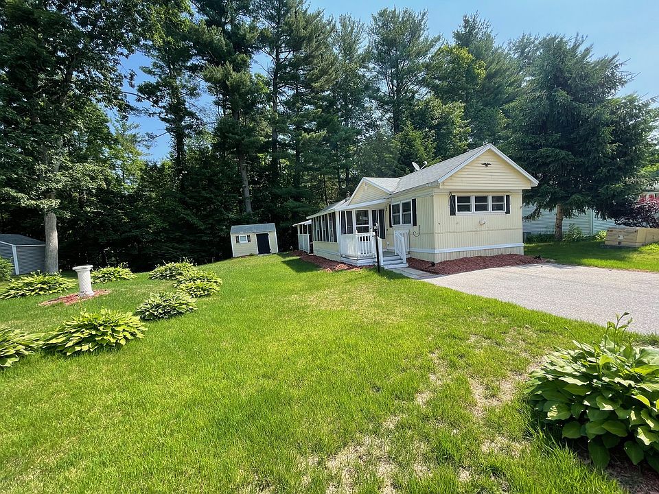 If you ve been pining away to live at River Pines, your chance has arrived in the form of this spacious two bedroom one bath home. Features include eat in kitchen with electric cooktop and range, dishwasher, microwave, refrigerator, double stainless sink, ceramic tile counters and floor. Living room with vaulted ceiling, separate laundry room washer and dryer included, bath has newer vanity, older walk in shower no tub! three season porch, nice yard abuts woods, covered patio and shed. Cul de sac setting. A little will go a long way at 5 Winding Lane Nashua.