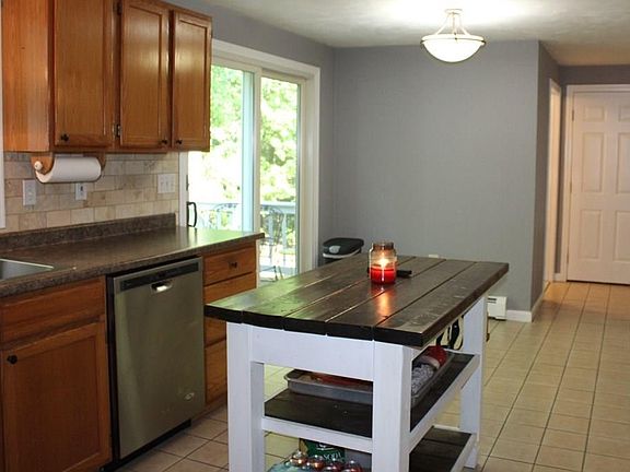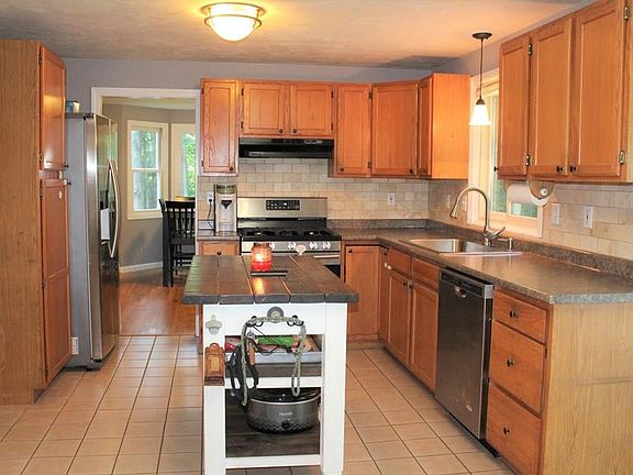 Welcome to this pristine 4 bedroom colonial set on a 1 acre wooded lot. The interior has just been painted, and has gleaming hardwood and tile floors throughout. The eat in kitchen boasts stainless appliances, tiled backsplash and tiled flooring. A walk out bay window highlights the sunsplashed dining room and a fireplaced family room has a pellet stove insert to warm you on those cold winter days. A large living room can be formal or a great playroom for the kids. The 1/2 bath with laundry completes the 1st floor. A front to back master bedroom accommodates king size furniture and has a walk in closet and private full bath. 3 additional bedrooms and the main bath complete the 2nd floor. Other features include Anderson windows, vinyl siding, 200 amp electric, newer hot water tank, 2 car garage, storage shed, oversized deck overlooking private back yard. All this plus a cul de sac location perfect for the kids and block parties. All offers will be entertained Sunday evening 8/9.