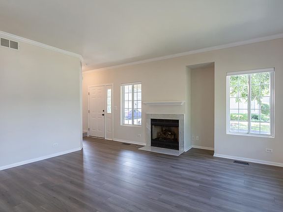 STUNNING end-unit attached home ~ fully rehabbed from top to bottom! No detail has been spared - new flooring, new lighting, updated kitchen, updated bathrooms, fresh neutral paint, and more! Open living and dining rooms feature luxury vinyl plank flooring and showcase a gorgeous fireplace with marble surround. Kitchen boasts new lighting, granite countertops, updated gray cabinets, beautiful backsplash, breakfast bar, and new stainless steel appliances. Master bedroom has a vaulted ceiling, double closets, and access to the remodeled shared bath. 2nd bedroom is bright and spacious and has a ceiling fan. 2nd floor also features a loft space which can be used as a home office, a playroom, or whatever suits your needs! Finished basement offers even more living space featuring a large open rec room area with canned lighting and granite countertop built-ins. Basement also includes the unfinished laundry/utility room. Attached extra deep one-car garage with epoxy floors. Great central location near the Randall Road corridor with shopping, dining, entertainment and more. Walking distance to the Fox River and the Fox River Walking/Biking Trail! Convenient access to Route 20 for easy commuting. This stunning home won't last long... don't miss out!!!