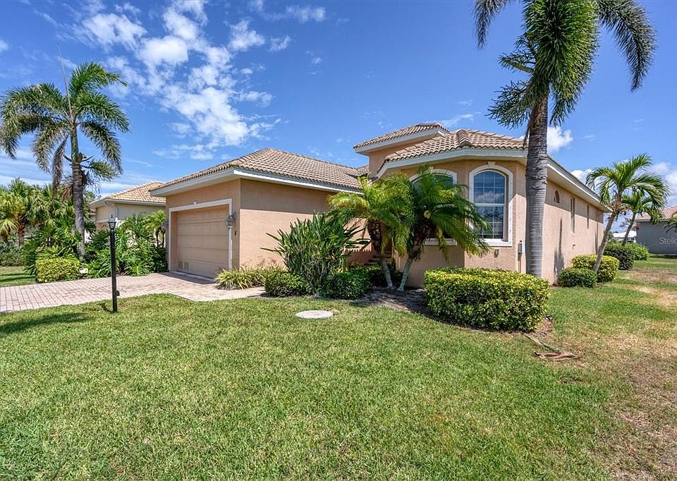Priced to sell. Delightful 2008 built home in Cape Haze Windward with a swimming pool and exquisite golf course and lake views. 3 beds and 2 full baths, tall ceilings, large great room, generous kitchen with lots of storage, upgraded wood cabinetry, stainless appliances, and stone counters. The home has tile flooring, concrete paver patio and driveway, and comes with storm shutters. Newer pool heater, washer, dryer and dishwasher. Situated in a quiet neighborhood and on a secluded cul de sac, the home offers excellent privacy and Association maintained landscaping. Enjoy watching fantastic native wildlife. Located in the Placida township, with walking or biking distance to a boutique Publix shopping center, several restaurants, three marinas, numerous golf courses, with easy access to Don Pedro Island State Park or Palm Island beaches, and just short distance across the causeway to historic Boca Grande.