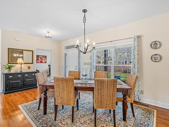 GORGEOUS RANCH, FINISHED WALK-OUT TERRACE & STUNNING 18th FAIRWAY GOLF VIEWS! Spacious main level living, solid hardwoods, 9' ceilings, 6" wall insulation, true home office, oversized windows, transoms, formal dining. Gorgeous kitchen & breakfast room loaded w/natural light, quartz counters, 42" cabinetry w/glass fronts, SS apps (new Bosch dishwasher 2021, new counter-depth Smart Fridge 2021, new microwave 2021), under cabinet/recessed lights, walk-in pantry. Several handicap features; oversized hallways/doorways, grab bars. Large primary suite w/oversized separate vanities, large water closet, walk-in shower, ceramic tile, 2 large walk-in closets. Laundry w/custom cabinets & extra fridge. New upgraded carpet 2023. Large screened porch w/upgraded new screens & large deck w/maintenance free railings, new boards fresh stain (all new 2022) & Sunbrella auto awning. Overlooking exceptionally private large .66 acre cul-de-sac lot. Terrace w/possible in-law suite, cabinetry, large family room, 4th bed, full bath, craft room w/ bench, deck. Walk-in storage room, attic storage, garage built-ins, new insulated garage door 2021, new water heater 2019, new dryer 2018, new washer 2019, water filtration system, freshly painted, gutter guards.