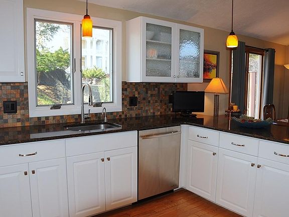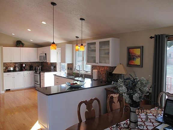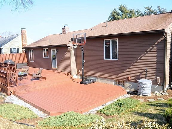 Pristine oversized split entrance ranch. Porcelain tiled entry foyer with unique staircase. Meticulously updated throughout. Fabulous open floor plan. Kitchen features Cambria quartz counters, glass front cabinets and custom lighting. 1st floor features vaulted ceiling, custom built 3 level lighting display area. two sided glass enclosed floor to ceiling raised hearth stone fireplace. MBR with gorgeous tiled bath. Lower level features, 9 foot ceilings, full size windows, French doors to nicely separated family room plus a kitchenette with 3/4 accessible bath. Three level 750+ S/F terraced deck blends nicely into beautifully landscaped and lighted lot with a heated inground pool. 2 car oversized garage, central air and irrigation system. Impeccably cared for and up graded, turn key condition for a fabulous summer. Welcome home..