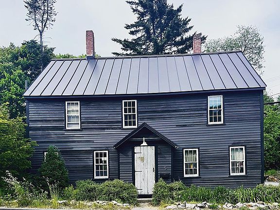 This 1800's Post and Beam, 4 bedroom Colonial is located in the heart of Topsham Village. Surrounded by apple, pear, and walnut trees, with blueberry bushes, this home has been well cared for and maintained. Exposed beams, lots of hardwood, a Borsh direct vent heater, Monson Slate counter tops, and a brand new 2021 state-of-the-art Horch matte-black metal roof! A full 2nd floor bathroom renovation is underway. A 2 car garage and a beautiful turn of the century 2 story barn round out this unique property. Located in the Lower Village, it can be used as a B&B, office space, service business, as well as other uses.