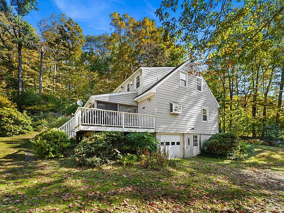Classic Cape in Prime Newtown Location. Set on 3.2 private acres at the end of a quiet dead-end road, this 3-bedroom, 2-bath Cape offers both charm and convenience-just minutes to town amenities and only one mile to I-84 at Exit 10. Lovingly maintained by its original owner, the home features a traditional Cape layout. The main level offers a front-to-rear living room with fireplace, a large dining room (previously used as the 3rd bedroom), a full bath, pantry, and a kitchen that opens to a screened, covered deck overlooking the peaceful, wooded property-much of it bordered by Newtown town land. Upstairs are two spacious dormered bedrooms with ample closet space, plus a full hallway bath. Oak hardwood floors run throughout most of the home, with vinyl siding, replacement windows, and an updated garage door already in place. Though largely in original condition, the home has been exceptionally well cared for and is ready for your personal updates. Property to be conveyed in as-is condition