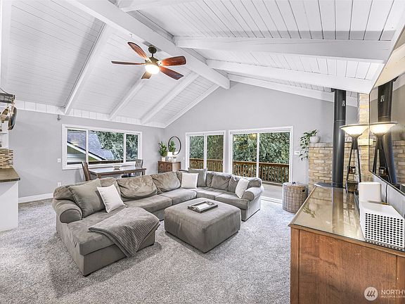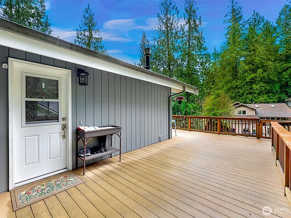 Meticulously maintained Sudden Valley home in Gate 2. Sunny location and just a short walk to Lake Louise. Updated cabin style with vaulted ceilings, wraparound deck & great natural light. Main floor offers bright kitchen w/ white cabinets, stainless steel appliances, open living/dining, plus 2 bedrooms & full bath. Downstairs: expansive primary suite w/ gas fireplace, 3rd bedroom, bonus flex room & ¾ bath. Flexible layout w/ potential for 2nd living space, home office, gym & more. Fenced yard ideal for pets. Move-in ready & full of charm! Vibrant community includes pools, gym, golf, trails, Lake Whatcom access & more.