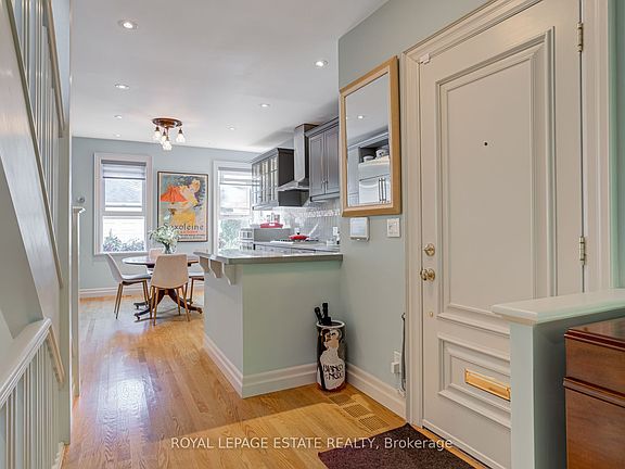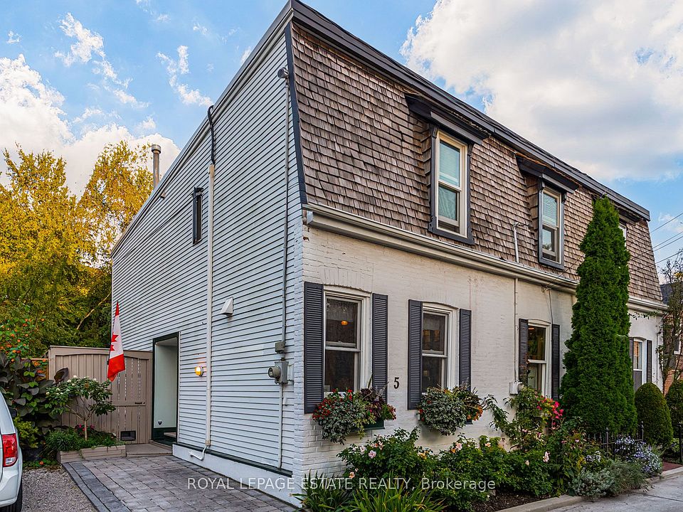 On a secluded Cabbagetown laneway "In prime Cabbagetown, this classic Second Empire 'Worker's Cottage' (circa 1870's) is perfect for a couple who enjoy life! In the summer, enjoy the private award-winning back garden. Prepare a meal at the outside kitchen on the natural gas BBQ while enjoying your guests. Or sit in the back patio, enjoying the quiet in a downtown neighbourhood with only the sound of the fountain to help you relax. Or relax over coffee in the sun-filled screened-in Muskoka Room. In the winter, open a bottle of wine from the 50+ wine cellar, or from the kitchen chiller, and relax by the gas fireplace. This is a home not to be missed: end of row with a side covered entrance, and separate side entrance to the backyard. The front features a mansard roof with ornate dormers. Inside has been renovated top to bottom. Open concept living/dining/kitchen, with hardwood floors, crown molding, gas fireplace, pot lights, designer chef's kitchen, high end SS appl.