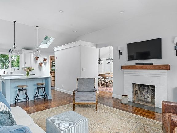 *Sunday’s open house cancelled* Welcome to this impeccably well maintained 3 bed 1 bath ranch on a quiet street minutes to highway and amenities. The current owners have left no stone unturned. The open living and kitchen space was created as part of a renovation that saw the removal of walls, installation of new hardwoods, creation of cathedral ceilings and of an opening created to incorporate dining room into main living area. Livingroom bay window allows light to flood and highlight the refinished working fireplace. Kitchen received many updates including skylight installation, refreshed cabinetry, soapstone counters, custom marble island and new appliances. Updated dining room is conveniently situated off of kitchen and living room and leads to attached garage. Hallway leads to the three bedrooms, each offering custom closet storage. Bathroom has been tastefully and completely renovated. The huge yard is has a new composite deck and is newly fenced in. New roof, new septic, new AC.