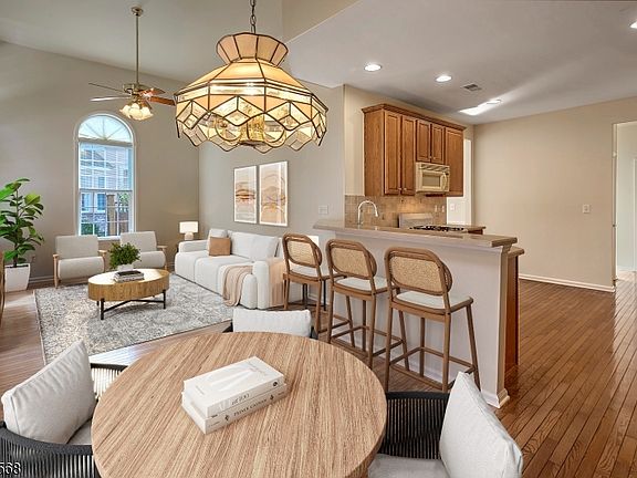 Beautifully maintained Bordeaux townhome on a cul-de-sac in the coveted resort-like Four Seasons 55+ Community in Chester. Dramatic two-story foyer with hardwood flooring. Light-drenched living room with soaring ceiling, walls of oversized windows, cozy gas fireplace. Elegantly appointed dining room with crown and chair rail moldings, bay window, and hardwood flooring. Eat-in kitchen tile backsplash, and breakfast bar. Patio off the kitchen overlooks private rear yard and woods. The family room next to the kitchen is perfect for entertaining and features high ceilings. First floor primary suite features a sitting area with a bay window, 2 large closets one is a walk-in, and an en suite bath with a soaking tub and tile shower. First floor laundry and powder room. Second level with spacious loft overlooking living room, 2 large bedrooms, full bath, lots of closet space. Finished lower ground level is a walkout with expansive recreation room, a full bath and huge storage utility room. New roof. Community amenities: clubhouse, outdoor pool, fitness room, billiards room, walking paths. This sought after location is close to fine dining, recreation, parks and shopping.