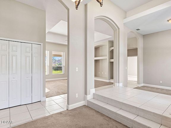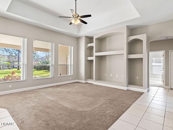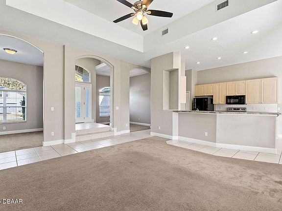 Centrally located in Palm Coast, this 4-bedroom, 2-bathroom block construction home offers over 2,200 sq. ft. of living space with 10' ceilings and a neutral color scheme throughout. The split bedroom floor plan provides privacy, while the formal living and dining rooms are perfect for socializing and entertaining. The master suite features trey ceilings, a walk-in closet, and a master bathroom with his and her sinks. Bedrooms are carpeted for comfort, while tile flooring in high-traffic areas ensures easy maintenance. The kitchen is equipped with black and stainless appliances, Formica countertops, and a spacious pantry for ample storage. Overlooking the family room, it's ideal for entertaining, with French doors leading to the covered lanai for seamless indoor-outdoor living. In addition to a 2-car garage, the home features a covered lanai and a spacious backyard, making it an excellent choice for families, first-time buyers, or anyone seeking a well-maintained and conveniently located home. Recent updates include a new roof (2025), A/C (2017), and water heater (2022). All information taken from the tax record, and while deemed reliable, cannot be guaranteed.