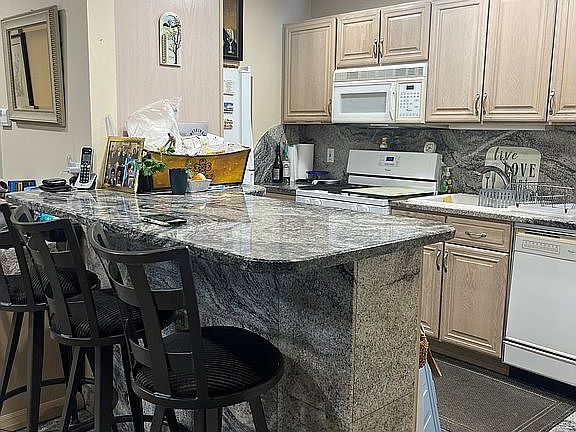 UNIT FEATURES: An open concept - The main living space has an open kitchen overlooking the dining and living room. The kitchen has stunning granite countertops and all needed appliances, including a new refrigerator. The glass sliders lead to a generous sized private deck for al fresco dining. There are granite floors in the main living area and hallway. The laundry room is conveniently located in the unit. The large master bedroom has a walk-in closet with a built-in safe and a private bath with tub and shower. The primary hall bathroom has a tub and shower. The second bedroom has ample closet space. There is an entry closet as well. Plenty of storage. All rooms have lots of windows allowing natural light in. There is a security alarm system in the unit. A large dedicated two car tandem garage with lots of storage space. The unit is conveniently located near NYC transportation, Rt 23 and Rt 46.