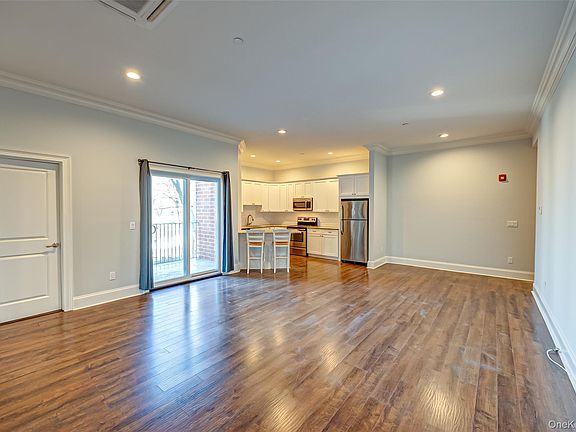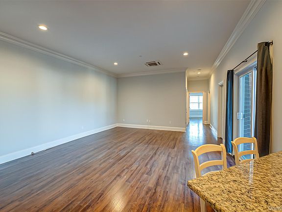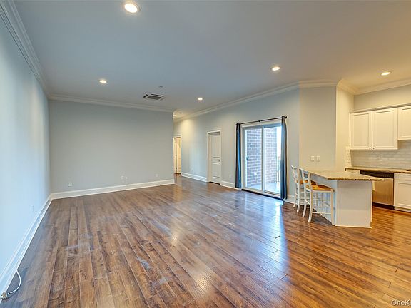 Stainless steel appliancesPrivate balconyCrown mouldingsKitchen with granite counters