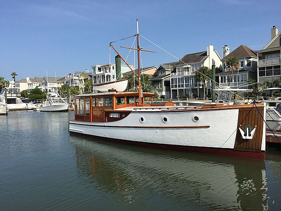 What a classic way to own a pied-à-terre in Charleston! A classic 1929 yacht that was commissioned by the former dean of physics of Stanford University can be your home on the water! Full provenance, to include video, from 1929 to present.She is 1 of 11 remaining and in pristine condition. Enjoy morning coffee while the sun rises and dolphins swim by. Very comfortable accommodations with two bedrooms that sleep 2 each, full head, great kitchen and living room surrounded by windows so you can enjoy nature. There is also an existing charter business if you'd like to captain this fine vessel. Everything has been redone during a recent 7 month haul out. Interior design done by a noted historical preservationist. A joy to live on in a beautiful location.