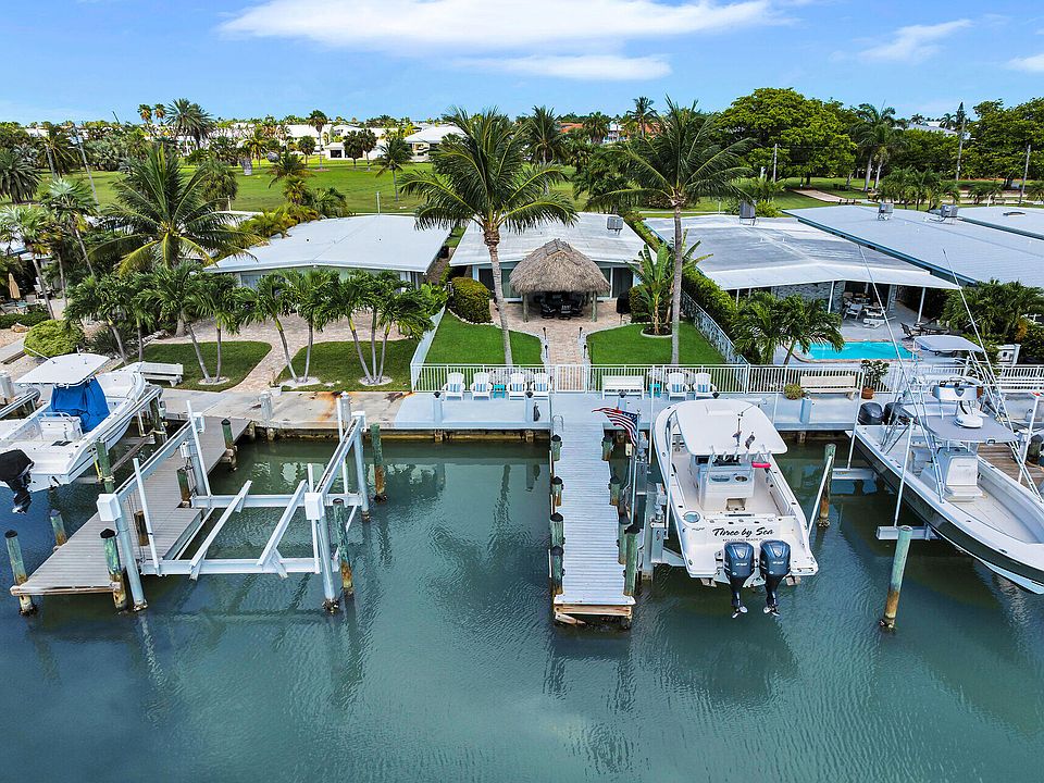 Experience Florida Keys living at its finest in this beautifully remodeled and redesigned home, theManatee Bungalow. Sold turn-key this property offers a proven rental history with bookings in place, making it the perfect option for a vacation rental or retirement home in paradise. This spacious and modern home features tile throughout, a custom kitchen with a large center island, a dining area, and a cozy living room. With three bedrooms, including two ensuite bathrooms, this home is perfect for families or groups of friends. The home is fully updated with impact-resistant windows and doors, plumbing, electrical, central AC system, as well as Mitsubishi mini splits in each bedroom for ultimate comfort. After a day of fun in the sun, step outside to your own personal tiki hut and enjoy a refreshing drink while taking in the tranquil scenery. This property also offers ample space for a pool. New pavers throughout the yard, white maintenance free aluminum fence, and an irrigation system for the lush lawn. Boat enthusiasts will love the two boat slips, each accommodating boats up to 50 feet in length, with one currently featuring a 12,000-pound lift. Enjoy the open-water views of the 200-ft wide canal with deep-water access, ideally located for exploring the open ocean and the Gulf. If you're an avid golfer, tennis player, or enjoy outdoor sports, you'll have access to a variety of activities right across the street, including golf, tennis, pickleball, basketball, and playgrounds. Don't miss the chance to experience island living at its finest at Manatee Bungalow.