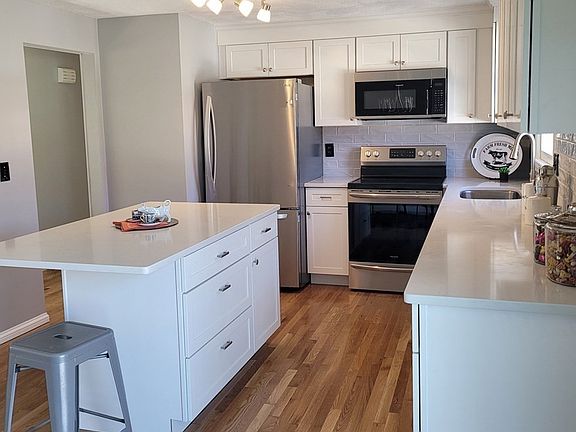 - Features: Flooring - Hardwood, Countertops - Stone/Granite/Solid, Kitchen Island, Open Floorplan, Remodeled, Stainless Steel Appliances